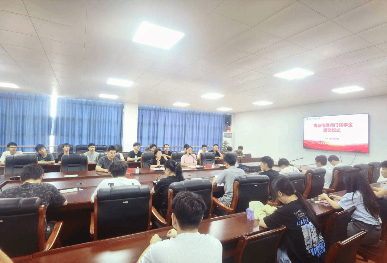 6月27日上午,2025年“青岛伟隆阀门”奖学金颁发仪式在PA视讯平台举行。公司党委书记焦晶、学工处副处长、校资助中心主任张存岩以及师生代表等出席捐赠仪式。