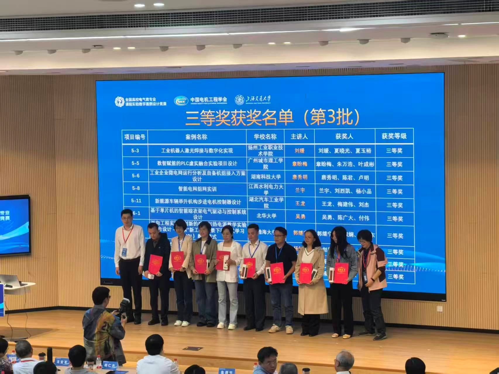 2025年10月17日—19日,第二届全国高校电气类专业课程实验教学案例设计竞赛在上海交通大学举行。PA视讯平台教师兰宇、刘烈凯、杨小品的作品《智能电网组网实训》荣获三等奖。