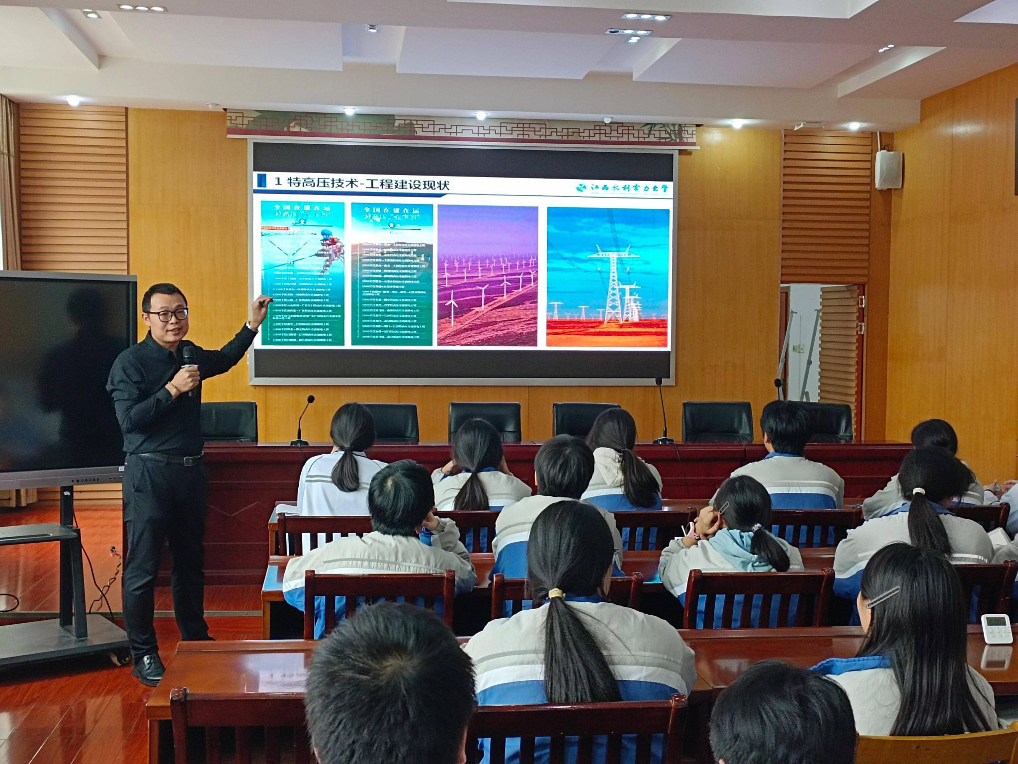 讲座伊始,曾兵从“中国能源资源分布呈现什么特点”引入,指出特高压技术是保障能源安全高效供应、推动能源转型和高质量发展、构建新型电力系统的重要路径,迅速激发了同学们的好奇心。随后,曾兵结合同学们掌握的物理知识,深入浅出地介绍了我国特高压技术发展、电力系统组成、多光谱成像技术及其在特高压输电线路运维领域的应用。讲座中,师生们全神贯注,对电力科普展现出浓厚的兴趣,积极参加互动,为我国在特高压技术领域取得的卓越成绩赞叹不已。“你们要志存高远,脚踏实地,用知识的土壤,培育希望的种子!”是曾兵博士对同学们的殷切寄语,也为本次科普讲座画上了圆满句号。