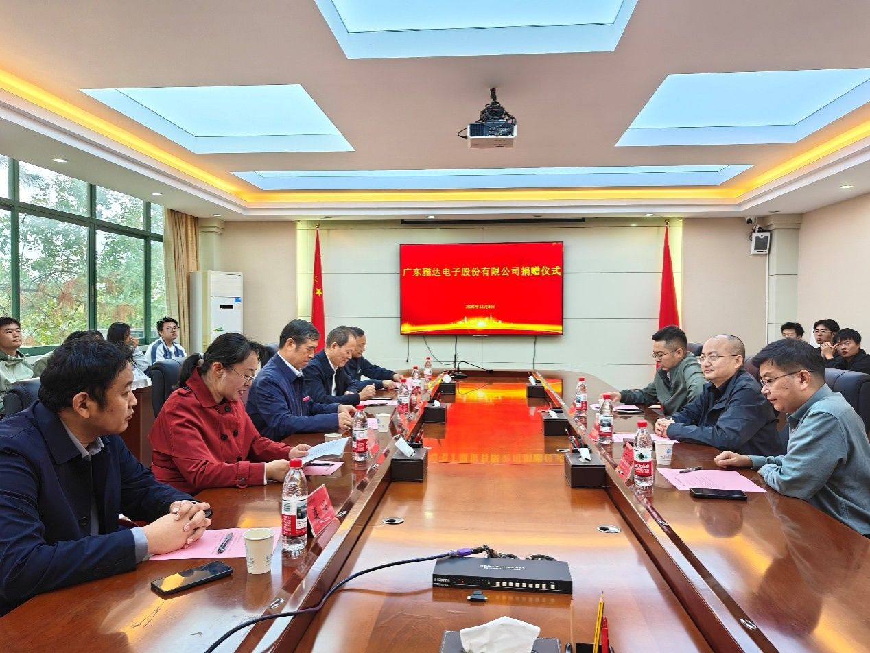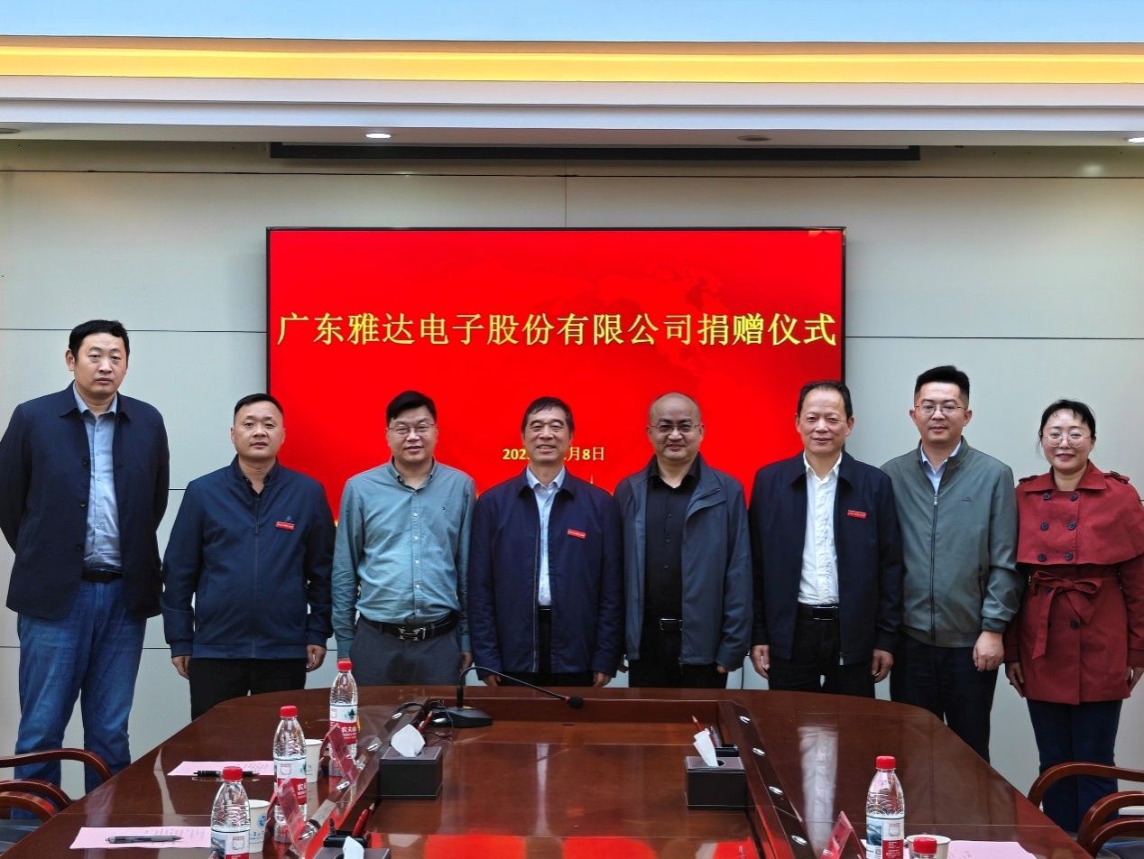 11月8日,广东雅达电子股份有限公司捐赠仪式在行政楼300会议室举行。公司党委副书记吴泽俊、副董事长张兴旺,公司1989级电力工程专业员工汤晓宇、1990级电力工程专业员工邓大智以及2004级工业电气自动化技术专业员工周飞鹏共同出席捐赠仪式。
