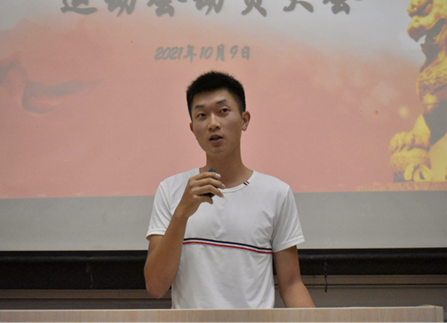 单项项目运动员代表黄冲及团体项目运动员代表孙韵诗发言,阐述了各自对体育精神、南工精神的深刻理解,并代表全体运动员做出承诺,必将竭尽所能发挥最佳成绩。展现了运动员们高涨的比赛热情和积极的训练态度。