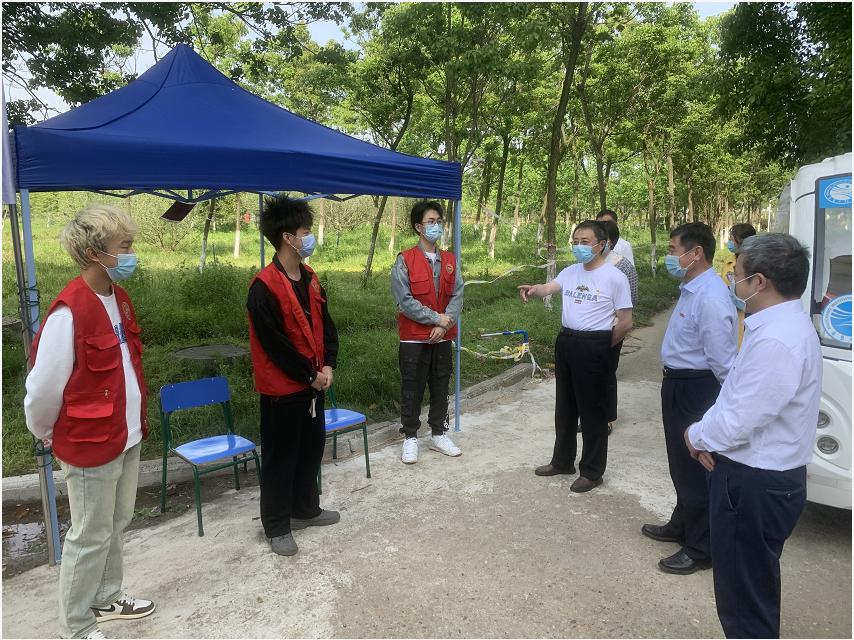 校领导一行查看了防控值班点工作环境,了解志愿者值班轮岗、防控力量调配等情况。亲切询问志愿者的值班、轮岗、学习、生活等情况,认真了解执勤中遇到的现实困难,并送上了免洗消毒凝胶、口罩等物资。