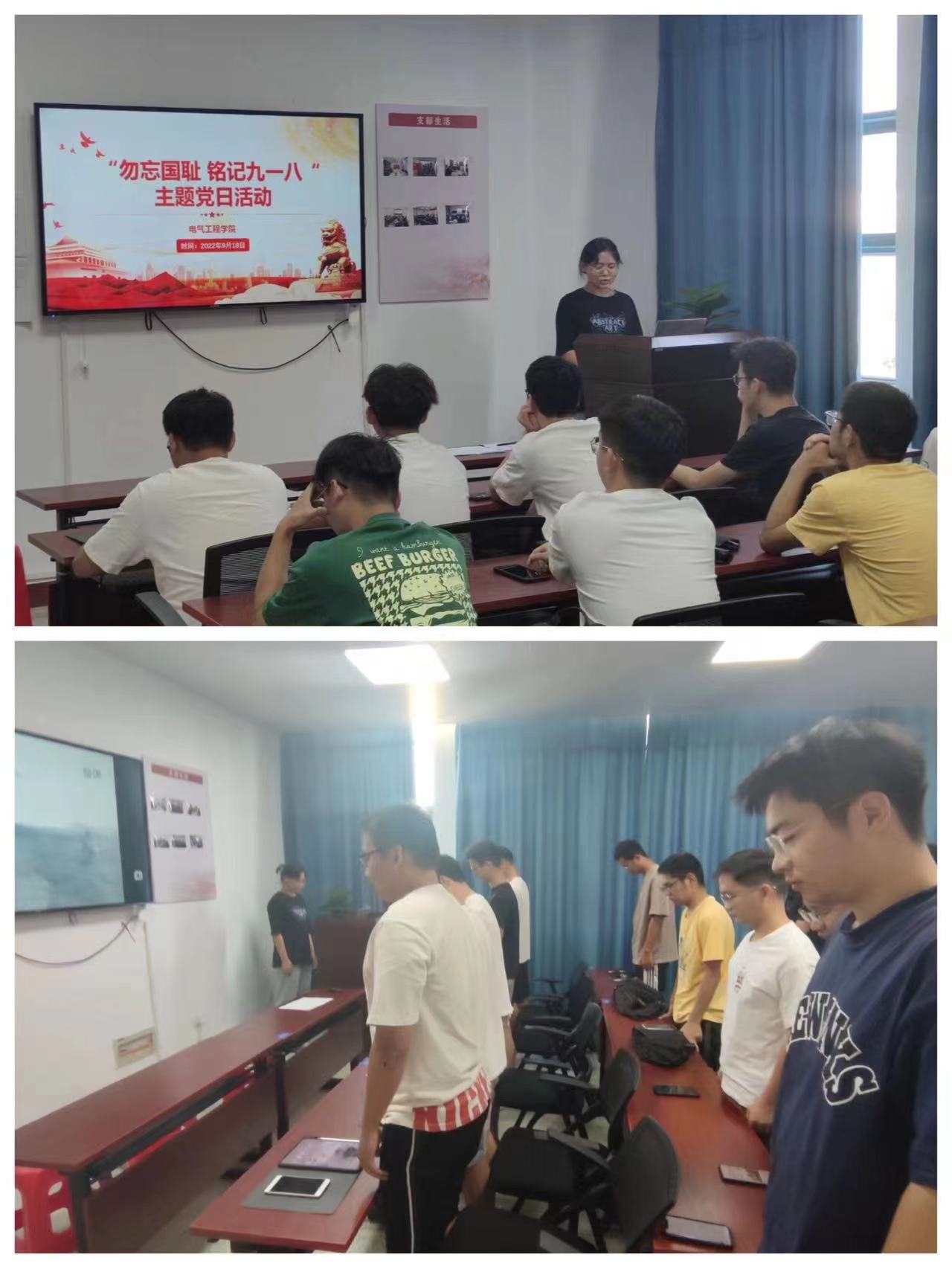 员工党支部在电气楼402会议室集中开展了主题党日活动,组织观看了纪录片《勿忘九一八》,回顾了“九一八”事变这段悲痛而又屈辱的历史,讲述了抗日战争时期中华民族遭受的屈辱和苦难,并介绍了中国共产党领导中国人民在抗日战争中取得的伟大成就。在9点18分,为深切缅怀革命先烈、悼念在“九一八”事变中遭受苦难的同胞们,全体党员代表起立默哀三分钟。