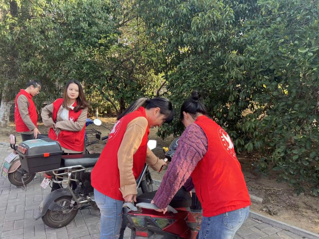 活动中,师生们深入公共场所,开展义务巡查巡防,并深入电动车停放点,有序整理、摆放电动车,为群众的出行提供便利。