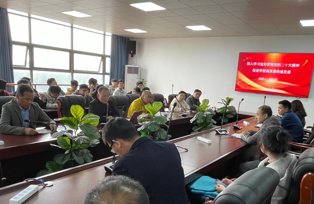 11月15日下午,公司党委委员、副董事长张兴旺在电气楼B304作“深入学习贯彻党的二十大精神,促进公司高质量快速发展”主题宣讲,PA视讯平台全体教职工、对口联系班级80余人聆听了报告。