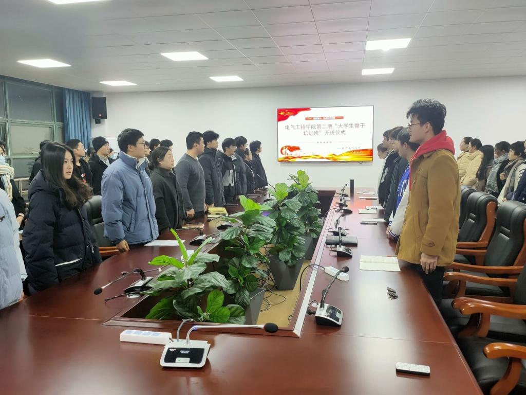 会上,团委负责老师付博宣读了本期培训班教学安排及纪律要求,第一期大骨班成员20电气03班李欣诺同学和第二期新学员代表22电气04班孙天池同学分别代表新老学员进行表态发言。