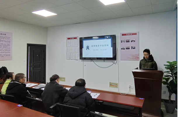 会上,周正华老师分享了“品学兔”奖学金的创办理念。唐玉娟书记就评审办法、程序等作了说明后,参评员工分别从学习成绩、获奖情况和课外实践等方面进行现场答辩,通过各位老师现场打分,最终确定韩旭等10名同学获得“品学兔”奖学金。