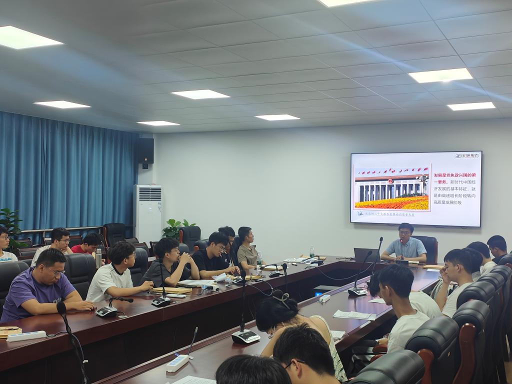 会前,支部书记涂怀谋老师强调了此次主题教育学习的重要意义,全体党员要积极主动参与到主题教育学习当中,不断深入学习贯彻习近平新时代中国特色社会主义思想,全面理解和把握主题教育总要求。随后,涂老师带领全体党员学习了“开创高质量发展”专题内容,学习了我国高质量发展的重要意义和基本内涵,并就如何推动我国高质量发展进行讲解和探讨。全体党员纷纷表示,此次学习活动意义重大,作为青年党员,必须要增强忧患意识,坚持底线思维,将个人理想同国家需要相结合,积极投身于新时代社会主义社会建设中,助力推动我国经济高质量发展。
