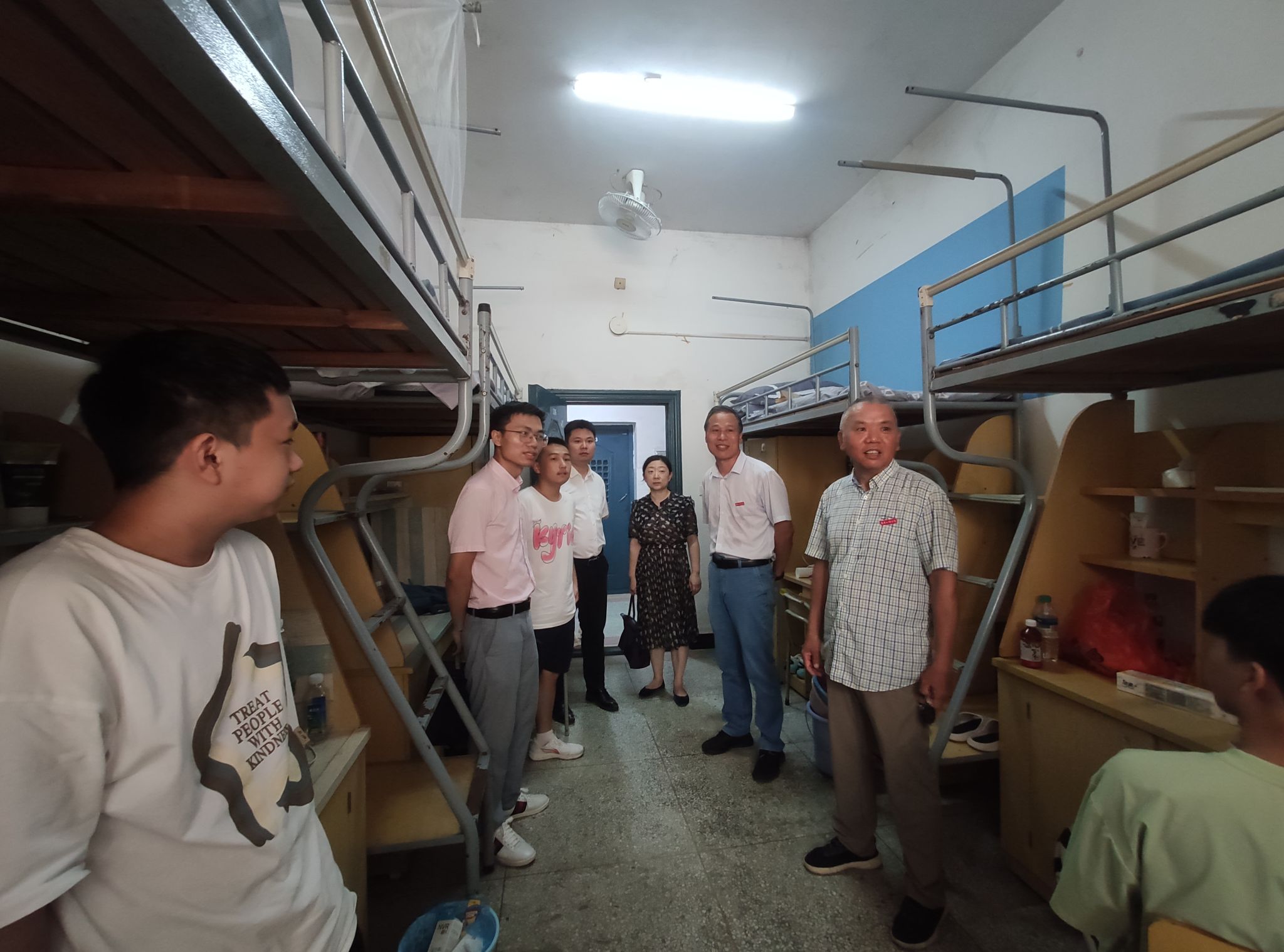 为进一步掌握新生入学适应情况,9月8日下午,公司党政领导带领全体辅导员深入员工宿舍,走访看望2023级新生,并给家庭经济困难的员工发放爱心大礼包。