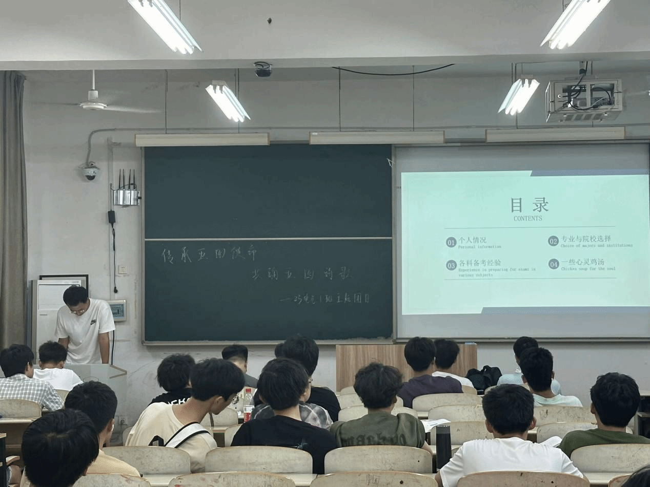 会前,辅导员涂怀谋老师讲述了本次活动的重要意义,希望同学们认真听讲,做好笔记,为做好自己的学业规划做好准备。随后,2020级考研上岸员工代表结合自己本科四年的求学经历,分别从考研目标的确定、考研复习的规划与方法等方面,分享了自己考研的心路历程及心得体会。现场气氛十分热烈,大家纷纷表示要以优秀的学长学姐为榜样,向他们学习。