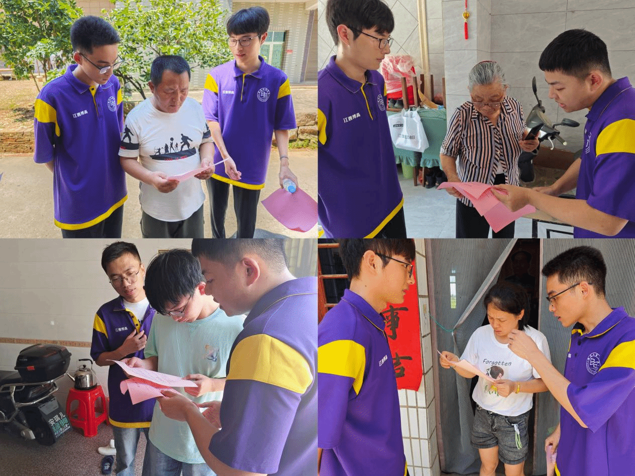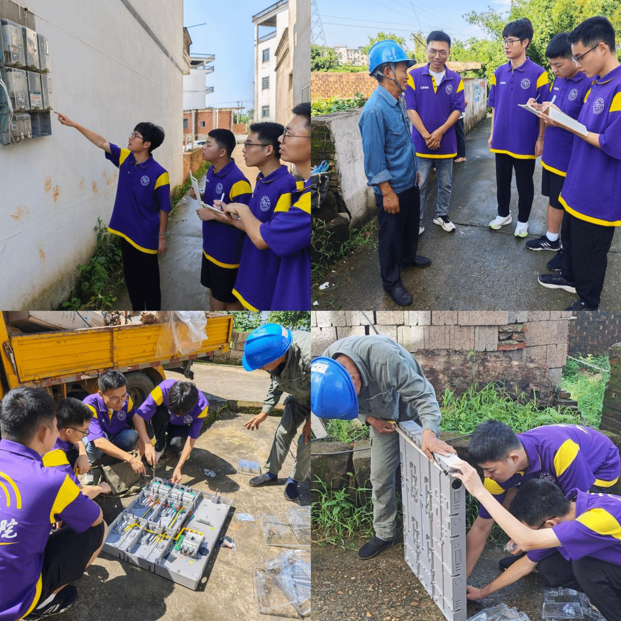 实践队员们在村委干部的带领下协助当地供电所维修人员入村全面排查入夏高温天气下村民家庭用电安全、电路规范问题,及时排查隐患;同时通过入户走访的形式开展夏季错峰用电专题调研,向当地村民发放安全用电宣传单并进行讲解,宣传“节能降碳,绿色生活”理念。活动期间,志愿者们还通过“电力需求响应”微视角多方位了解供电企业电力维修的服务流程和举措,零距离感受一线员工的艰辛,捕捉感人的瞬间。