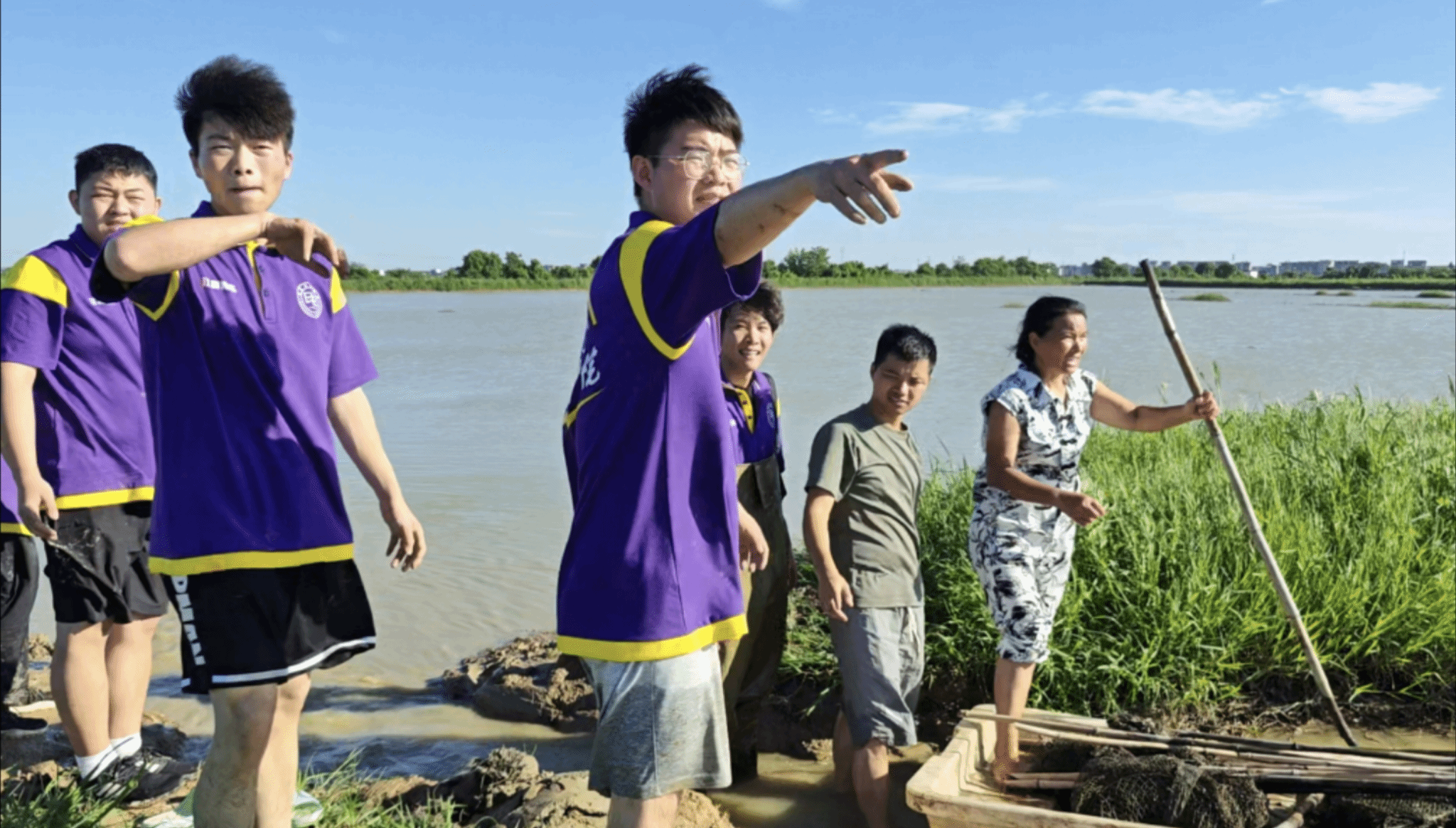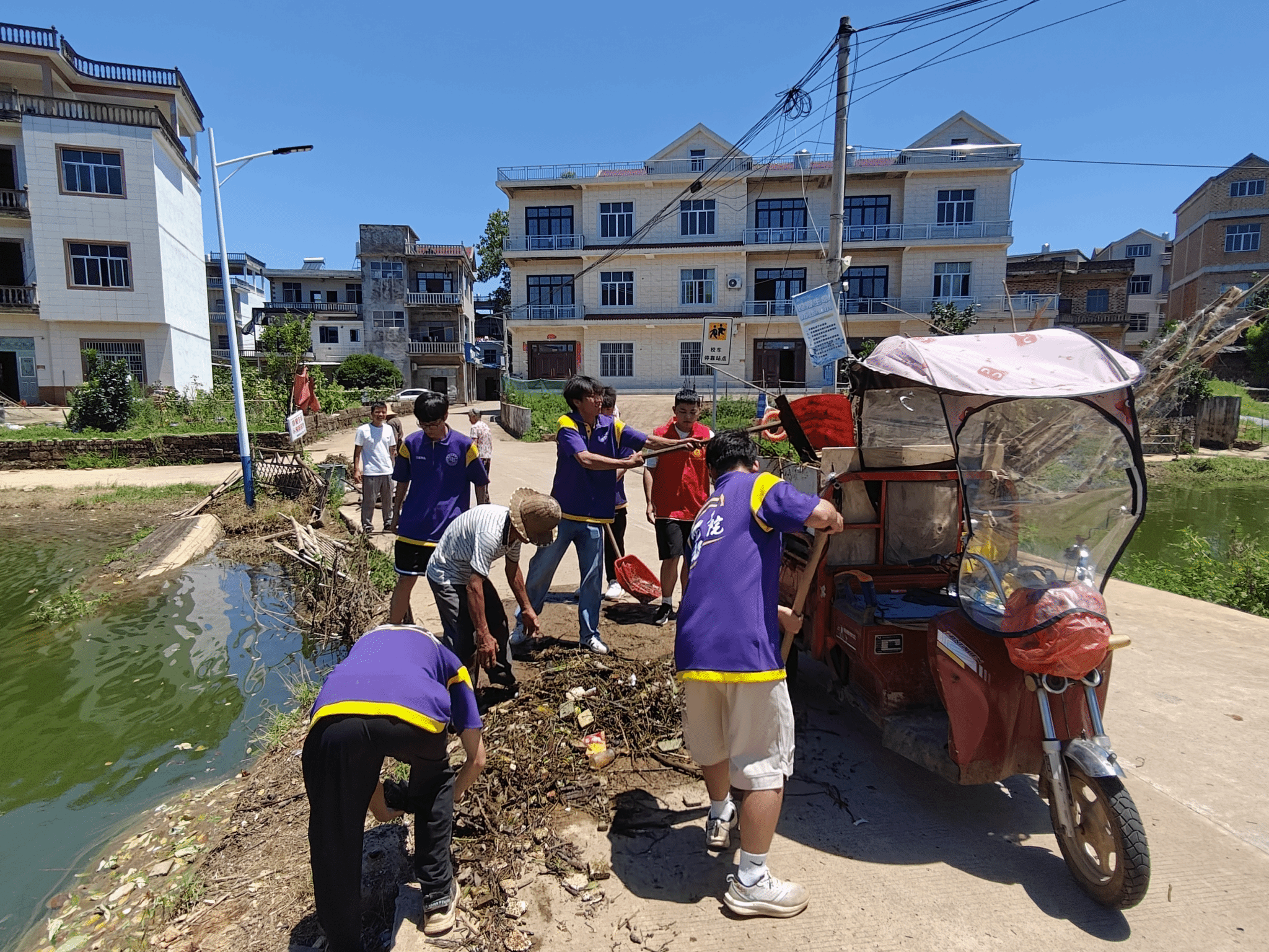 当了解到受前期强降雨影响,方家洲村雷家小组内湖堆积了冲击而下大量的杂草、废纸、枯树等垃圾,部分路段积水退后排水沟内被泥沙和淤泥堵塞时,志愿者们积极响应,迅速集结,手持铁铲、扫帚等工具,清河道、铲淤泥、清扫垃圾、清洗地面,化身成为一条条小巷中的“清道夫”。活动期间,志愿者们还走进余干县丰佑种养殖专业合作社,在养殖户的带领下,走进稻虾养殖基地调研生态“稻虾共作”技术,并协助进行秧苗栽种,龙虾地笼回收,田地翻耕、淹水管理等志愿实践行动。