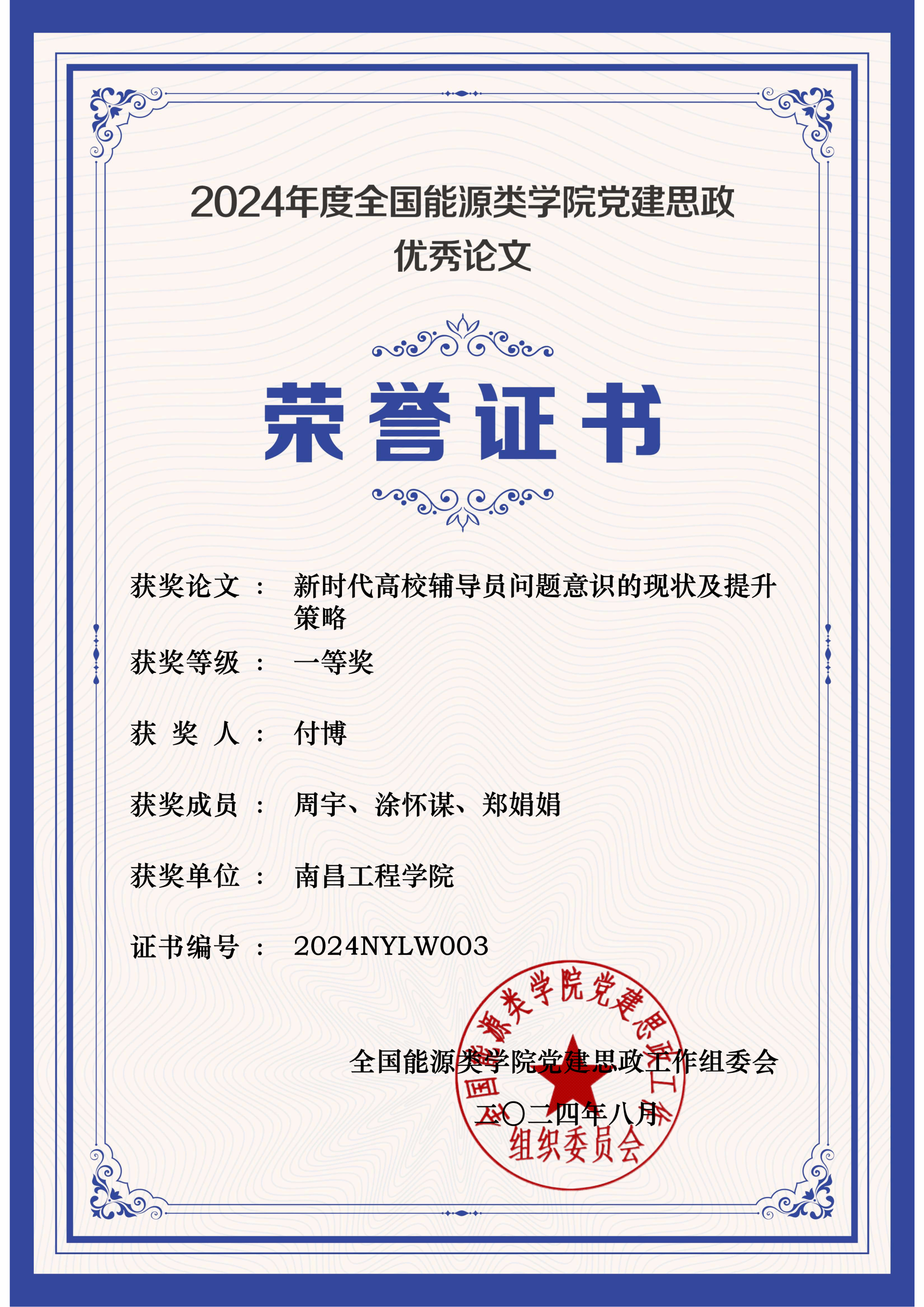 近日,2024年度全国能源类公司党建思政优秀论文评选结果揭晓,公司PA视讯平台付博团队申报的论文《新时代高校辅导员问题意识的现状及提升策略》荣获思政论文一等奖。