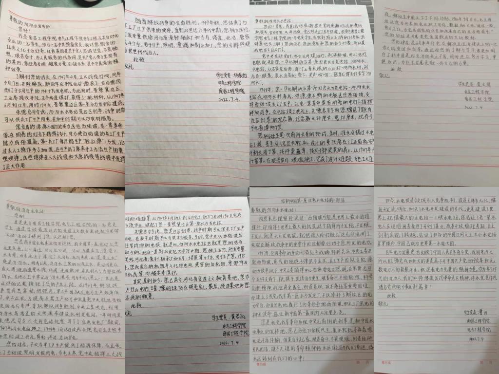 先辈们在既无成品又无从购买,甚至从未见过水轮机的前提下白手起家,从旧书摊上买日文版的资料边翻译边研究、边设计边改进,最终研制成功。作为电气学子,我们感受着革命先辈及专业前辈们白手起家、艰苦奋斗的创业精神,舍生忘死、不怕牺牲的奉献精神,攻坚克难、刻苦钻研的开拓精神,军面团结、携手共建的协作精神。不禁以书信形式抒发情怀,向前辈们致敬。