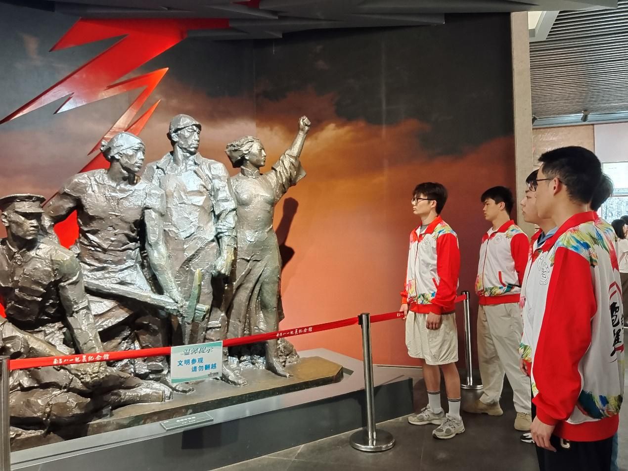八一馆内,一张张图片、一件件实物,再现了那段烽火岁月,红色讲解员所讲述的一个个故事,诠释了“坚定信念、听党指挥,为民奋斗、百折不挠,敢为人先、勇于创新”的八一精神。同学们认真浏览参观每个展厅及展品,并向革命烈士雕像敬献鲜花,深切缅怀为革命事业流血牺牲的先烈。