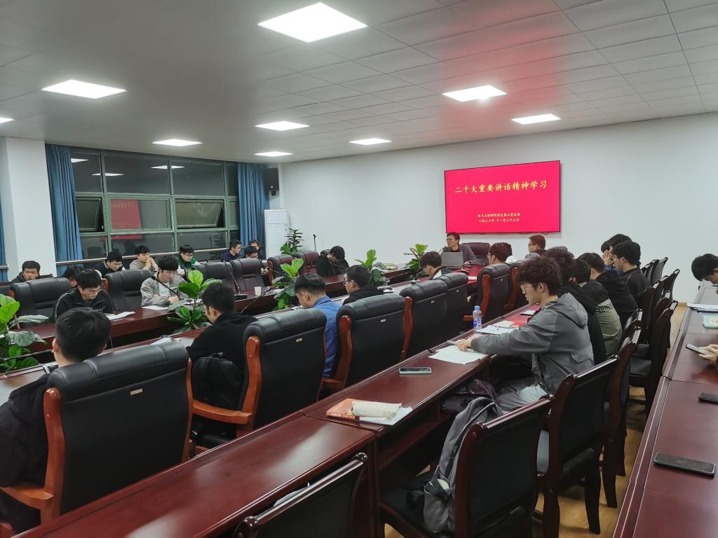 2022年11月23日晚上8点,PA视讯平台员工第三党支部在电气楼B304开展深入学习宣传贯彻党的二十大报告的党日活动,支部书记涂怀谋老师及员工第三党支部全体党员参加此次活动。